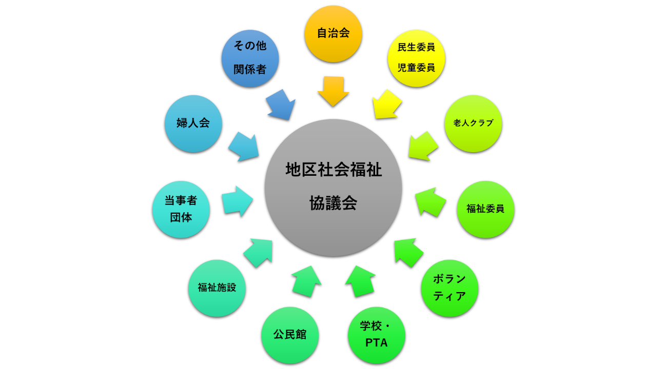 地区社会福祉協議会は、市内20の地区ごとに組織されています。